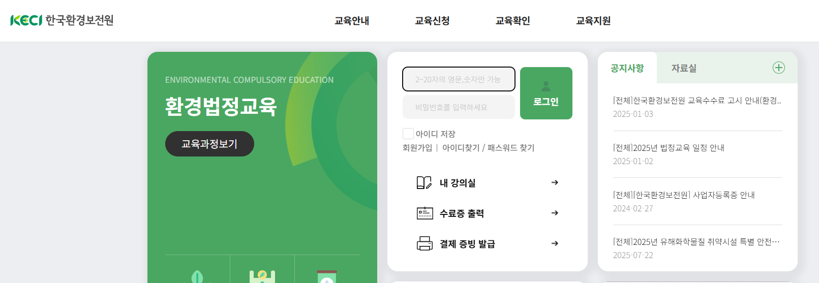 - 검색사이트에서 "환경보전협회 법정교육" 검색